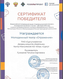 – во всероссийской литературной акции «Сокровища русской классики», посвященной писателям и поэтам - юбилярам 2025 года, в рамках межведомственного культурно-образовательного проекта Минкультуры России и Минпросвещения России «Культура для школьников» (сертификат победителя);